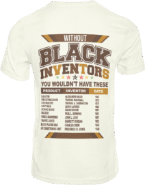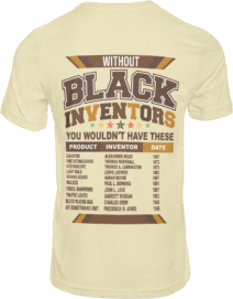 Black Inventors T-Shirt –  Beautiful & Educational listing some inventors by name from 1867 to 1949, available here in S – 3X