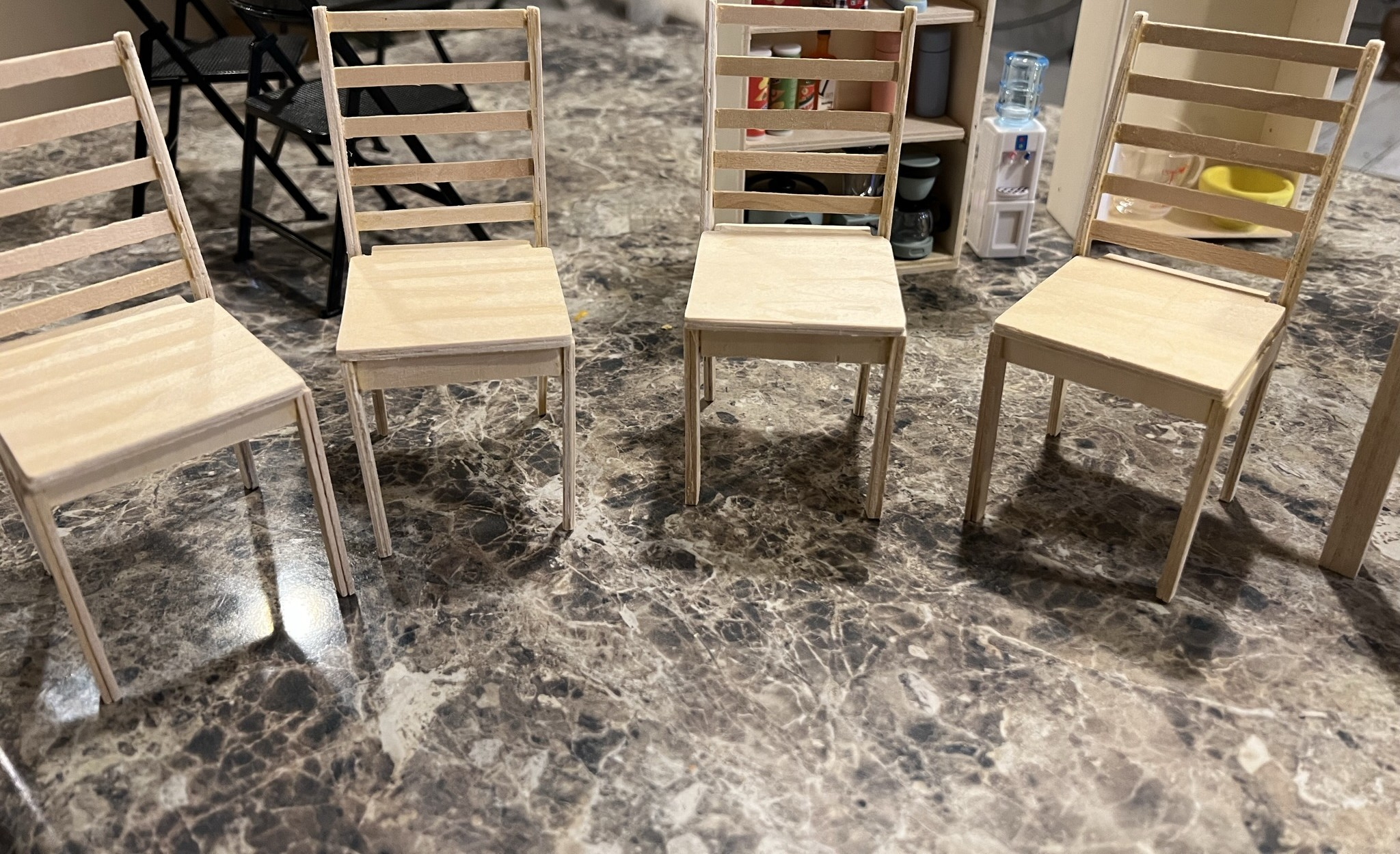 Dollhouse Dinning Chairs in 1/6 scale. Stained, painted on natural Wood $15 per chair
