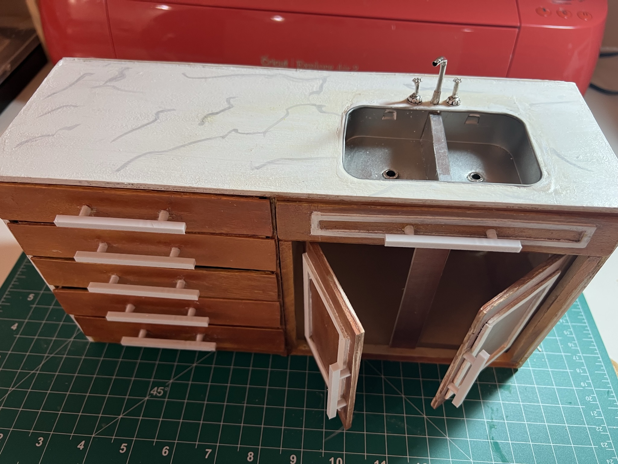 Doll House Kitchen Cabinet 1/6 scale unique, marble design on top and sides, stained, painted or natural Wood